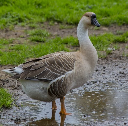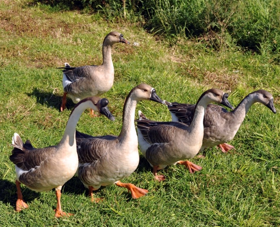 The African goose originated from the wild Asian Swan Goose of China. It was introduced into Europe in the late 1700s and into the USA in the mid 1800s. The original Lion Head breed of goose in China is the same shape and coloration as our African geese. How these geese from China got the name African has always been puzzling. Apparently, it was usual to apply the term “Guinea” to anything foreign and of uncertain origin. As Guinea is off the coast of Africa, it appears the African goose got its name in a similar way.