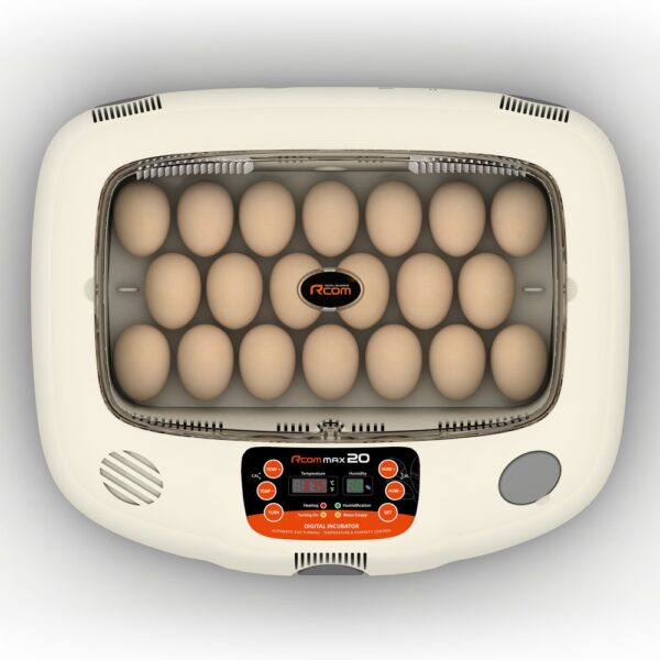 The Rcom 20 MAX digital incubator is one of Rcom’s best-selling egg incubators and one of the most advanced incubators available. The Rcom 20 is a fully automatic egg incubator with full digital temperature, humidity, and egg-turning control. Its simple menu system makes it one of the easiest incubators to use.