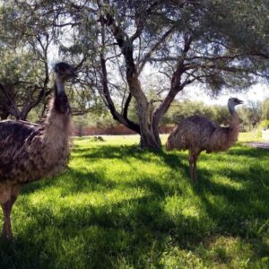 Emus live in a wide range of habitats, including grasslands, deserts, and forests, making them one of the most widespread birds in Australia. They are social birds that live and travel in flocks, except during mating season when they become territorial