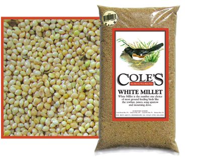 Millet is a small white seed, and is a favorite of House Sparrows and Reed Buntings.